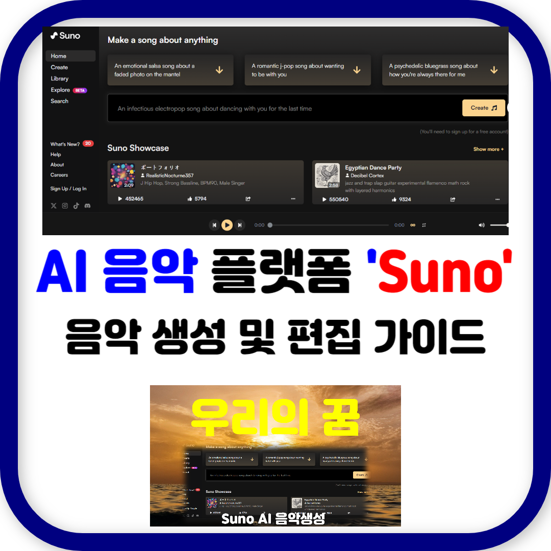 Suno의 다양한 기능을 활용하여 자신만의 독창적인 음악을 만들어보세요.